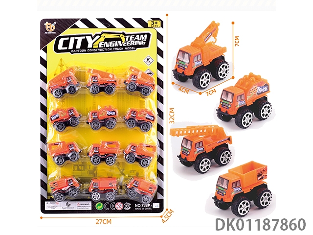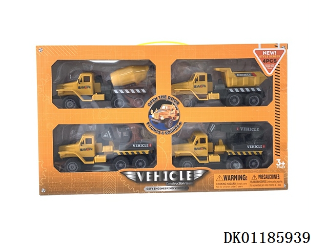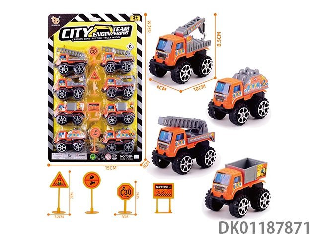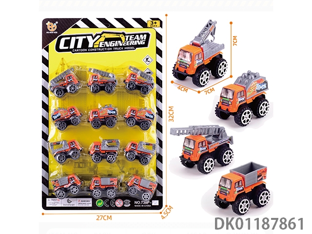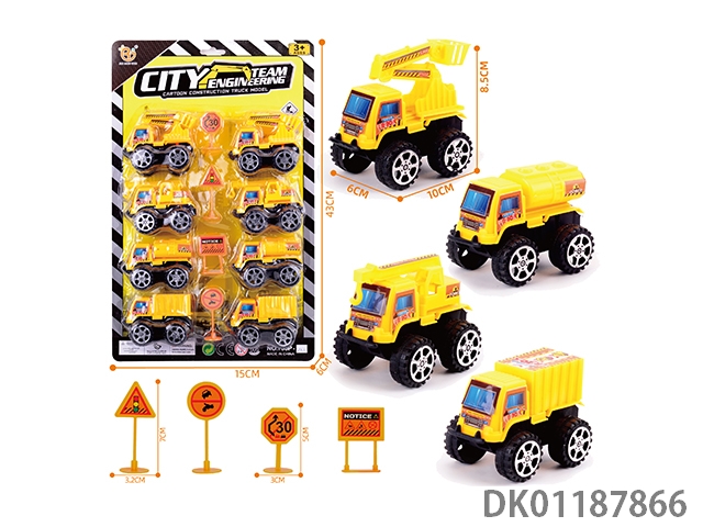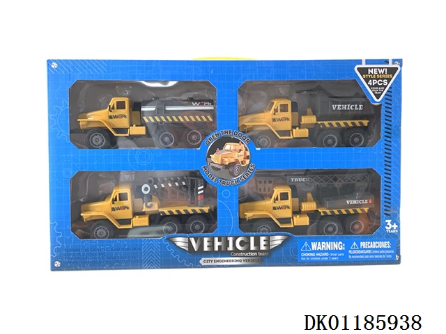 Engineering vehicle flat bottom return force simulation oil filling small truck three door toy car