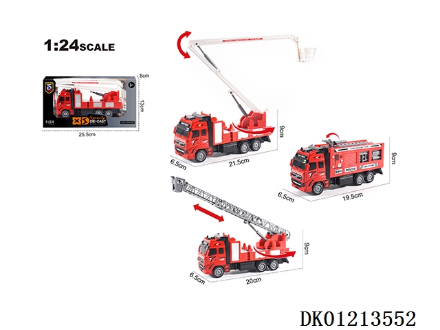 English 1:24 zinc alloy fire protection series (ladder car, climbing car, water tank car) 3 mixed packaging