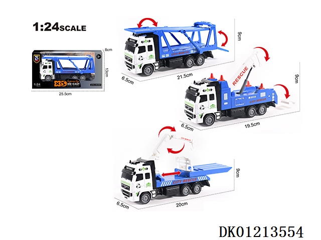 English 1:24 zinc alloy rescue series (rescue trailer/flat crane/double decker transport vehicle) 3 mixed packages