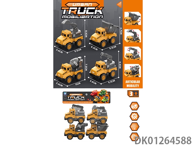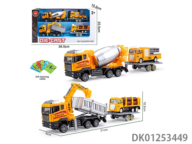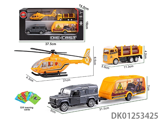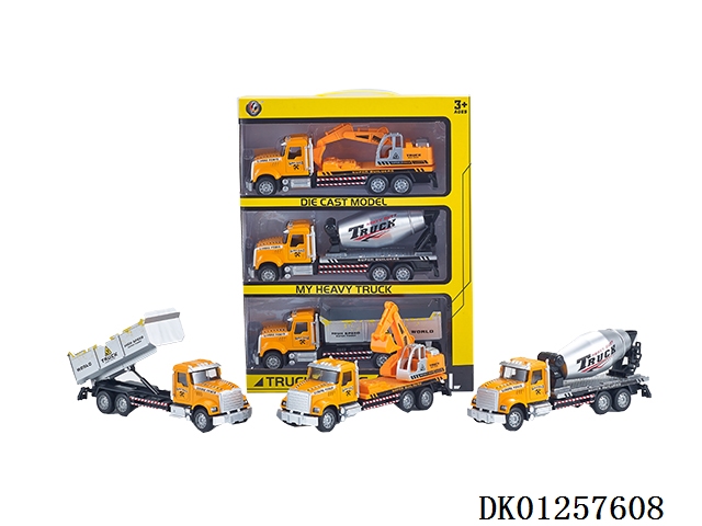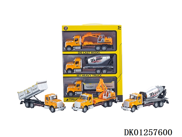 1: 28 American alloy engineering vehicles, 3 pieces/portable window box