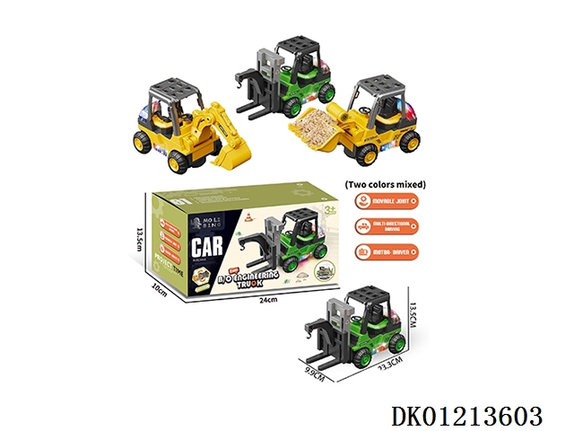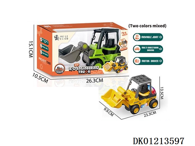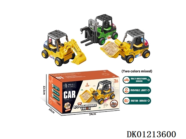 Electric door opening, self unloading, music and lighting universal engineering vehicle