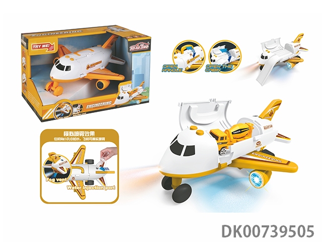 Lighting, music, spray, deformable engineering aircraft (with 2 alloy cars) (3 1.5v batteries).