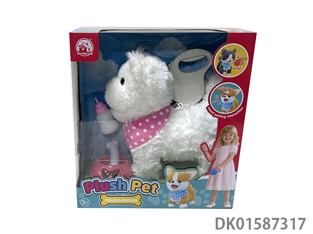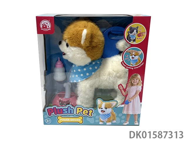 Charging version electric rope plush licking dog (long press the rope switch to record and learn to speak - can sing and dance)