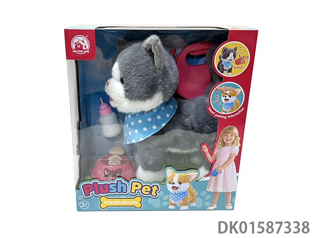 Charging version electric rope plush licking cat (long press the rope switch to record and learn to speak - can sing and dance)