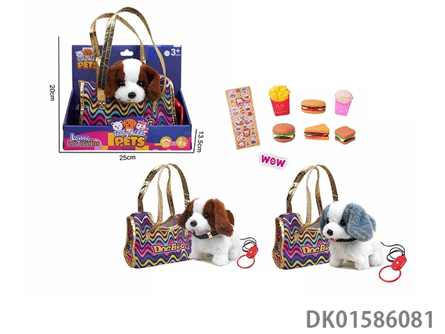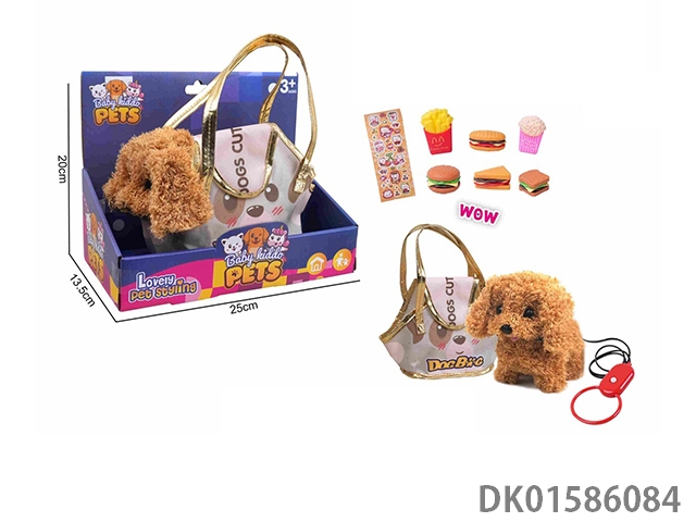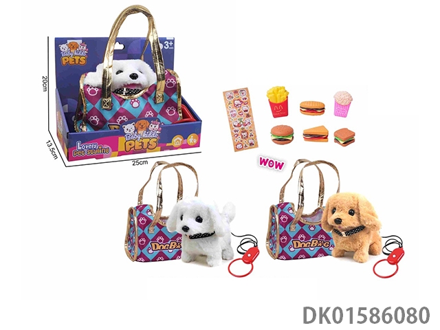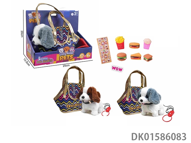 Electric leash walking plush dog and handbag set (2-color dog, food accessory kit)