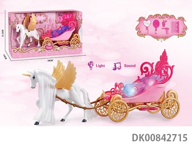 Static color hair horse dream car with princess (pink)