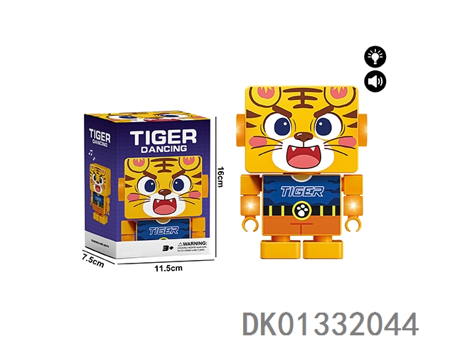 Lights, music, dancing, block people, tigers