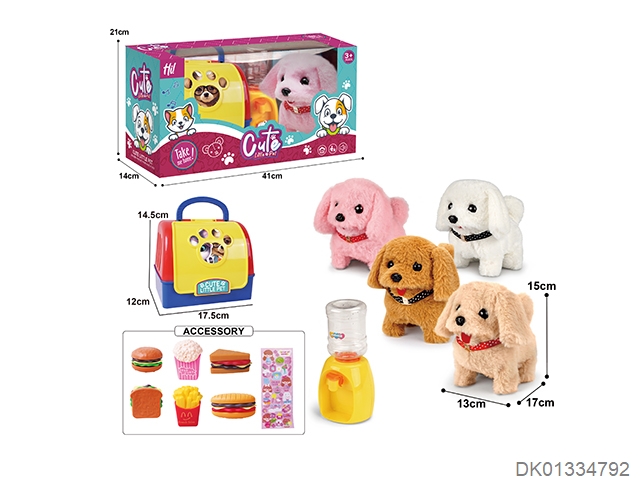 Handheld cage electric plush walking dog, water dispenser, and small accessories (4-color mixed) 2 * aa (not included)
