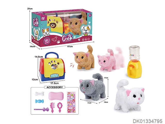 Handheld cage electric plush walking cat, water dispenser, and accessories (4-color mixed) 2 * aa (not included)