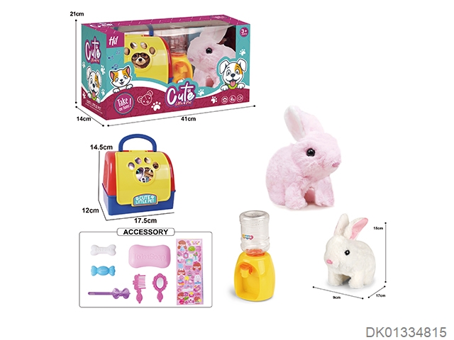Handheld cage electric plush walking rabbit, water dispenser, and small accessories 2 * aa (not included)