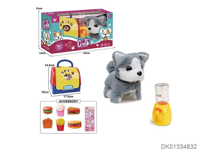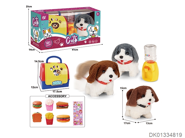 Handheld cage electric plush walking dog, water dispenser, and accessories (monochrome) 2 * aa (not included)