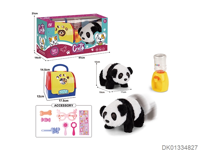 Handheld cage electric plush walking panda and water dispenser with accessories (monochrome) 2 * aa (not included)