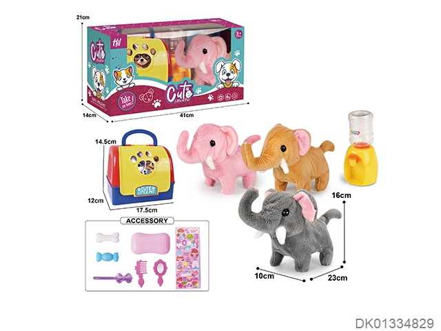 Handheld cage electric plush walking elephant and water dispenser with small accessories (3-color mixed) 2 * aa (not included)