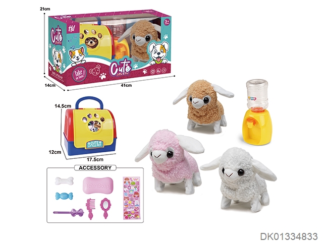 Handheld cage electric plush walking sheep and water dispenser with small accessories (3-color mixed) 2 * aa (not included)