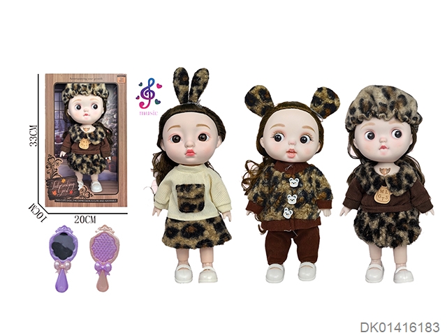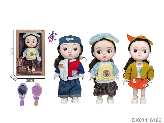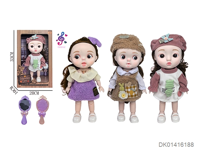 12 Inch cute baby with full joint music and lighting, peach shaped meatballs, big eyes, biomimetic doll expression, doll with mirror and comb