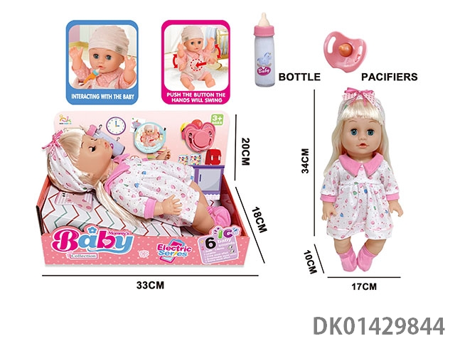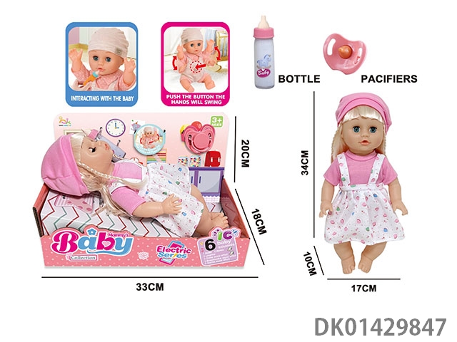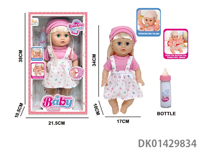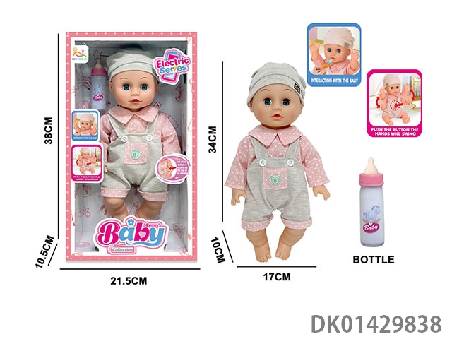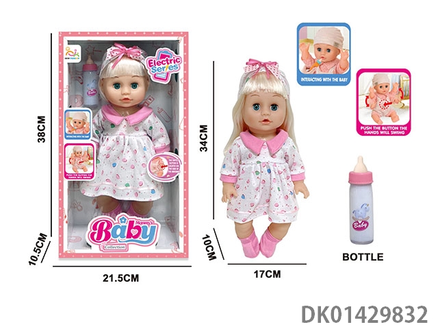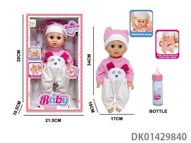 14 Inch english 6-speaker electric intelligent recording doll (electric injection molded body, pond glue hands and feet, no package electric with magical bottle, nipple)