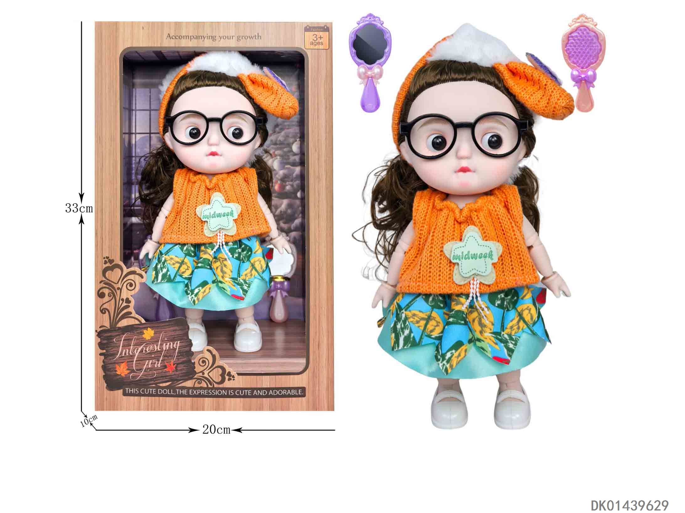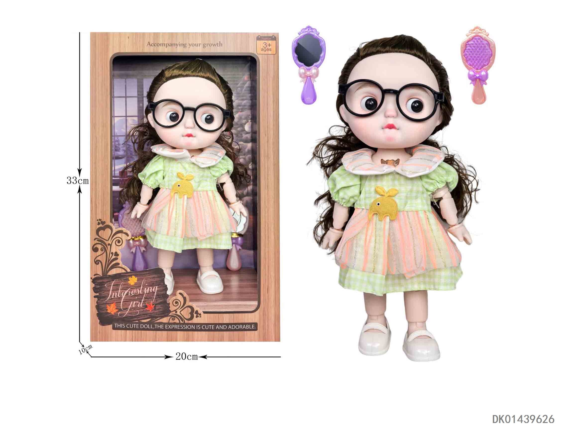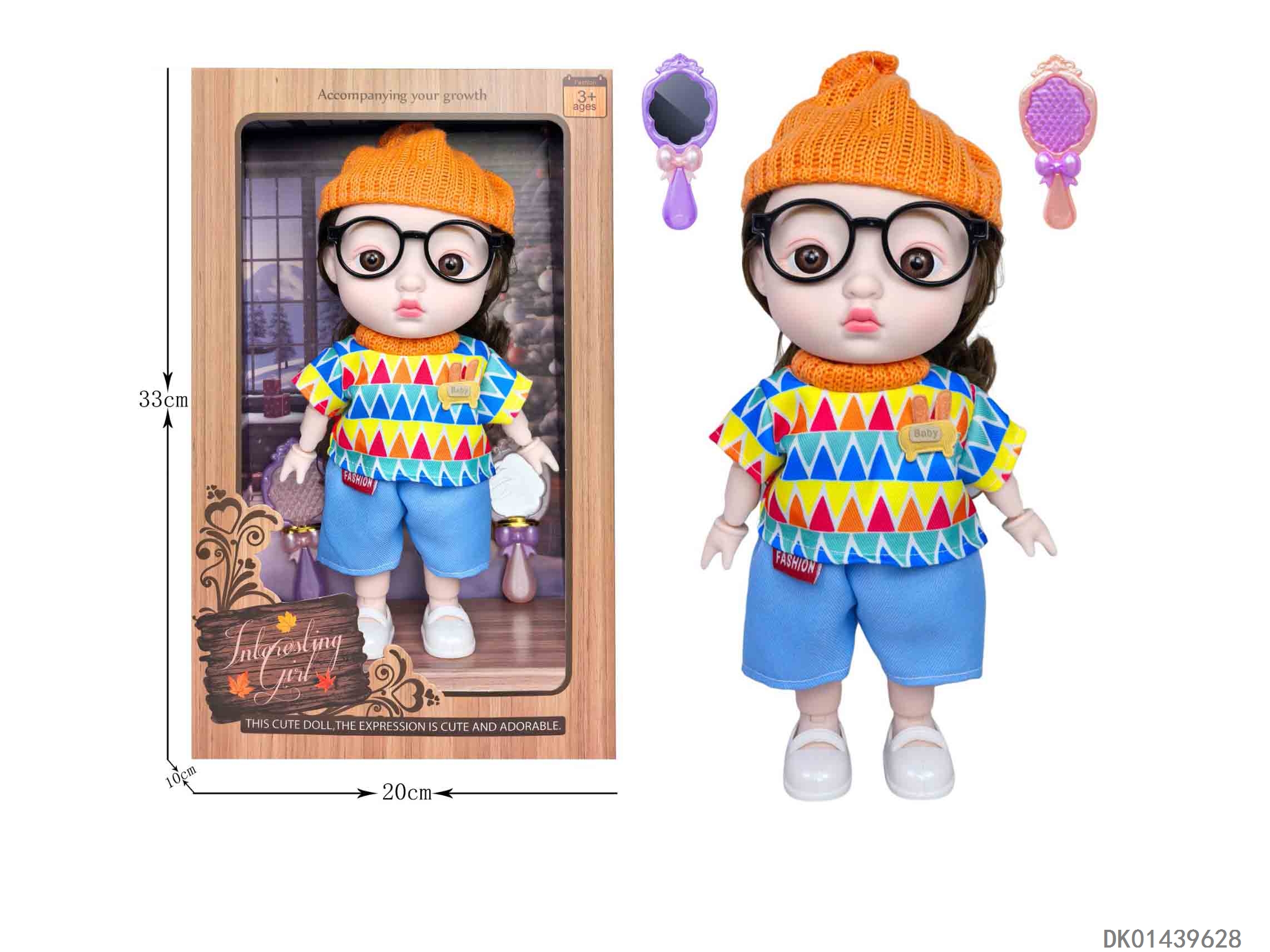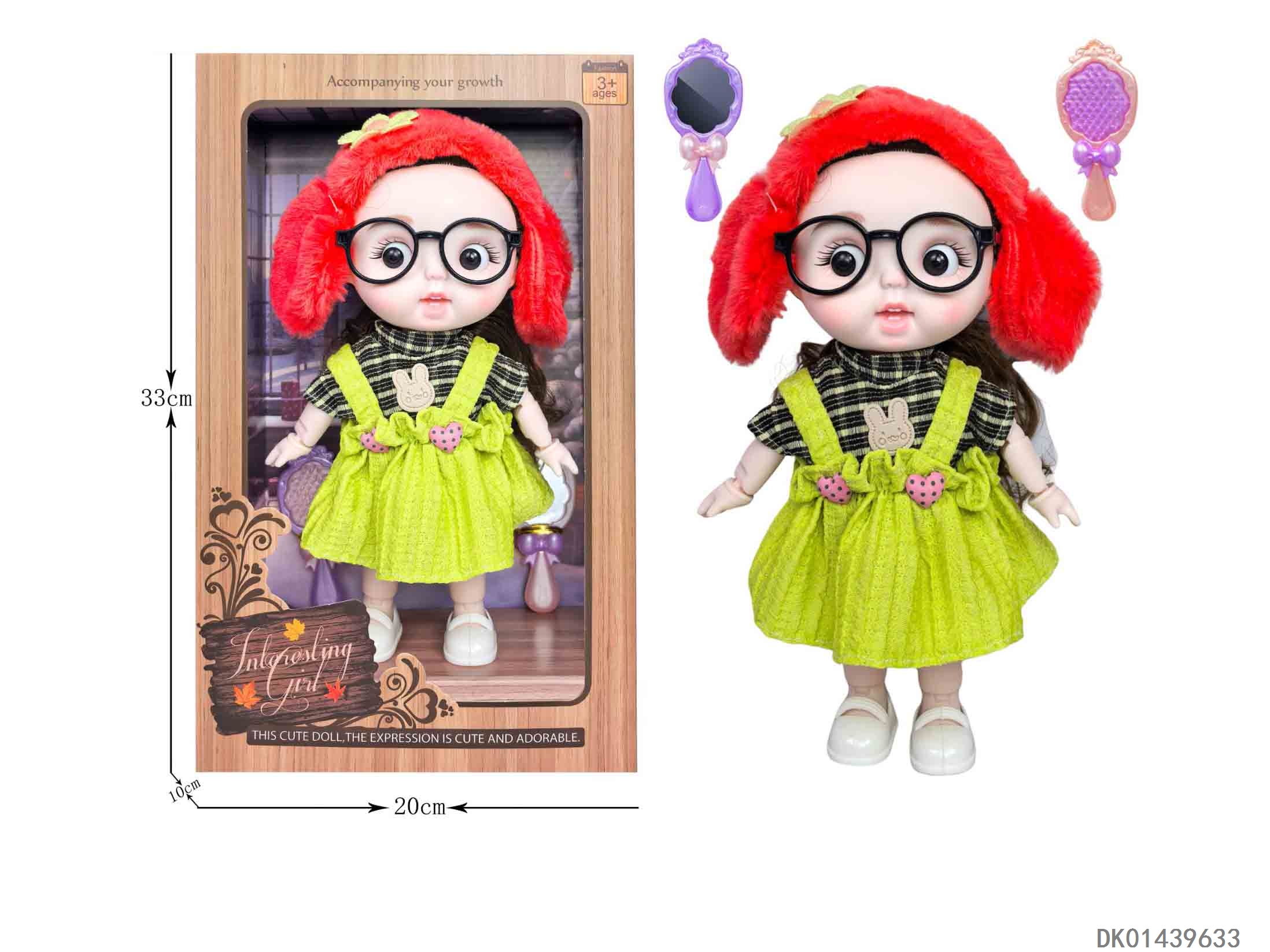 12 Inch cute baby with full joint music and lighting, peach shaped meatballs, big eyes, biomimetic doll expression, doll with mirror and comb, 6 pieces of music