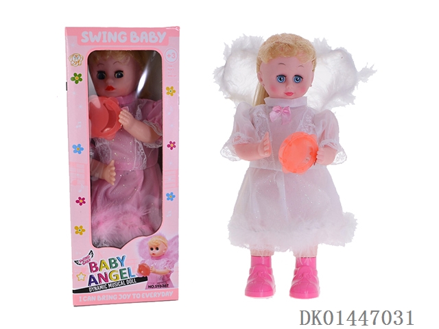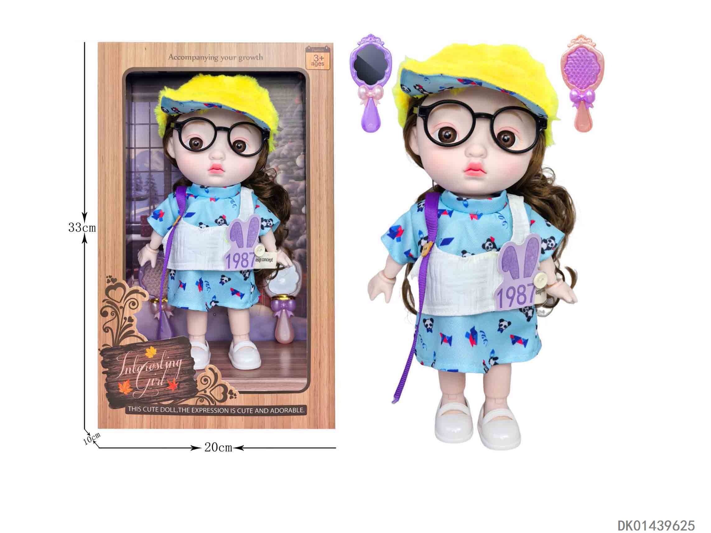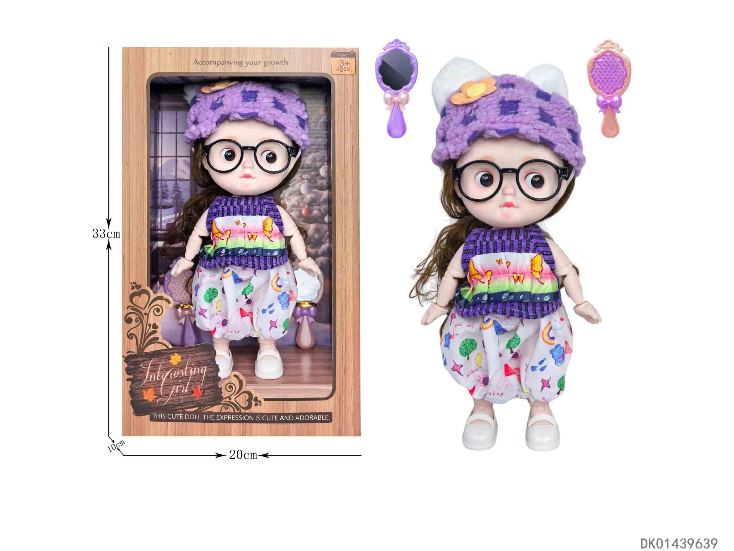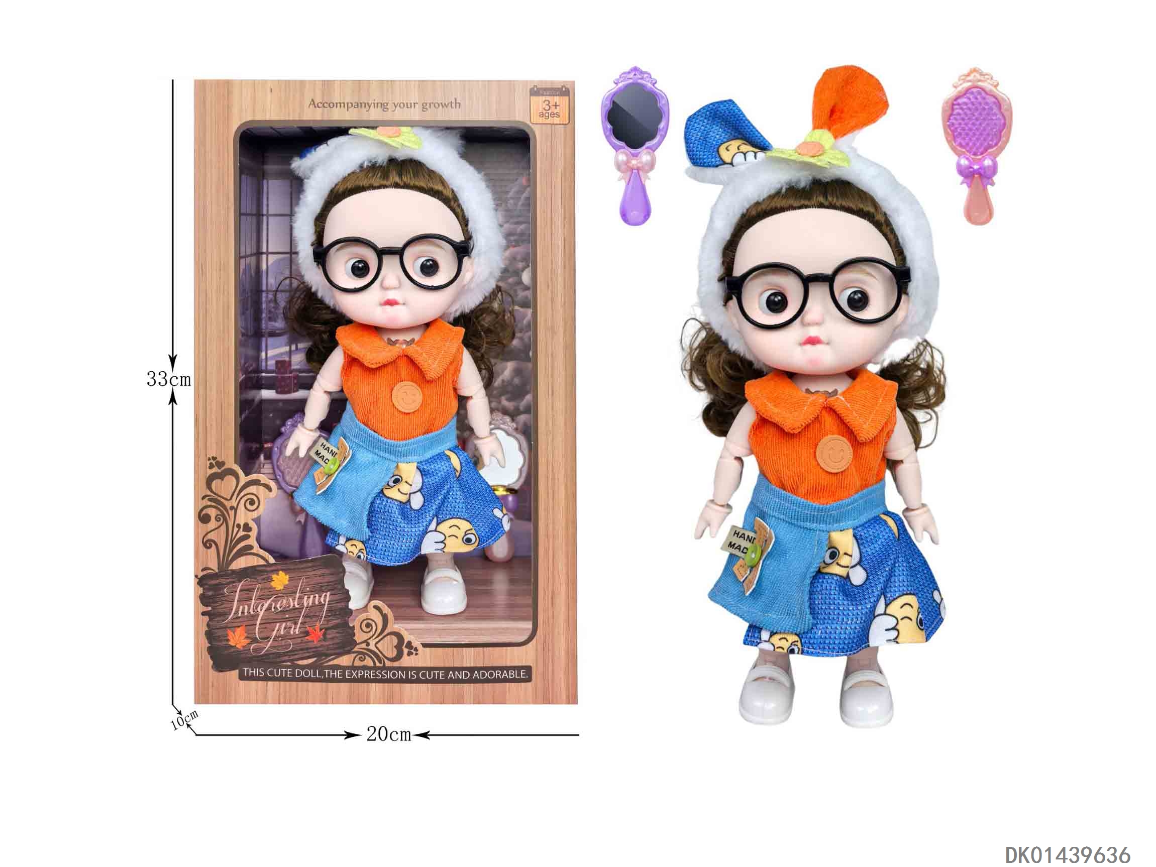 12 Inch cute baby with full joint music and lighting, peach shaped meatballs, big eyes, biomimetic doll expression, doll with mirror and comb, 6 pieces of music