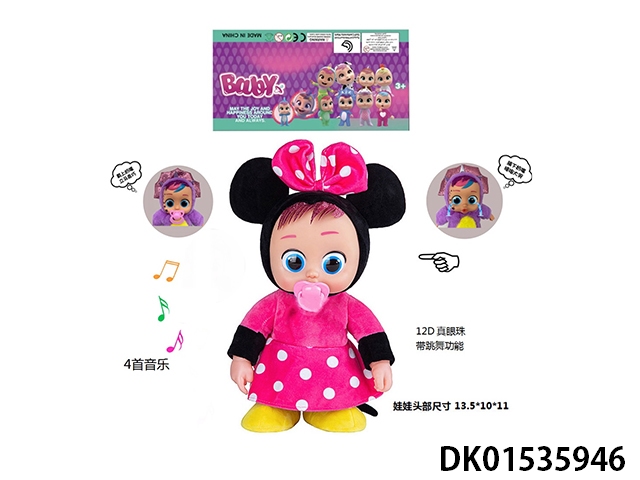 22 Inch injection molded solid body electric walking 12d real eye ball plush mickey crying baby with nipple sensing. function description [crying, singing 4 songs, dancing, walking no electricity included