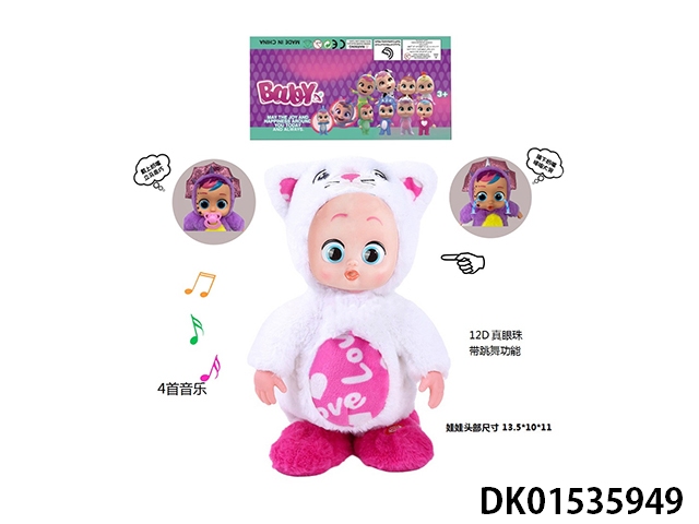 22 Inch injection molded solid body electric walking 12d real eye ball plush night light cat crying baby with nipple sensing. function description [crying, singing 4 songs, dancing, walking no electricity included