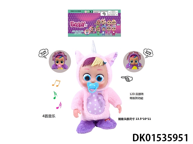 22 Inch injection molded solid body electric walking 12d real eye ball plush unicorn horse crying baby with nipple sensing. function description [crying, singing 4 songs, dancing, walking no electricity included