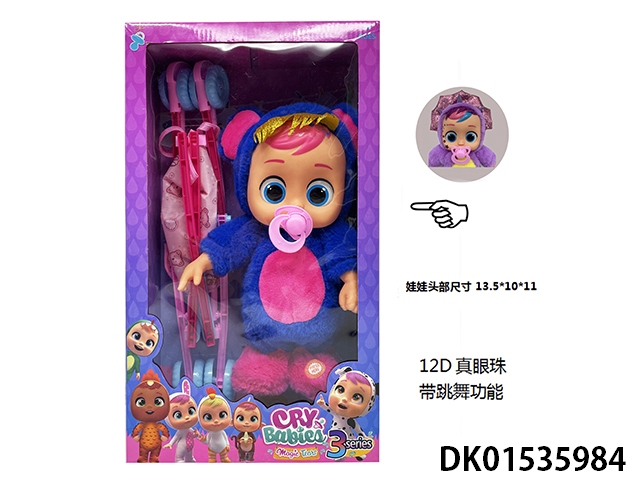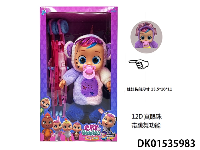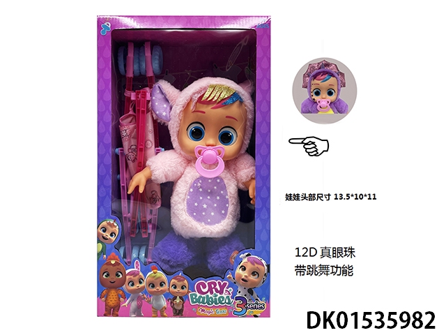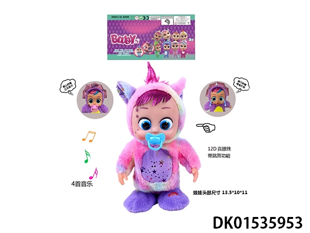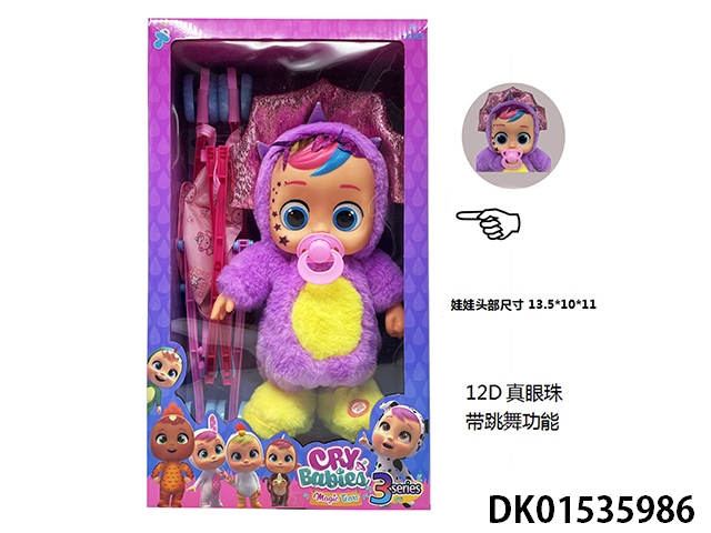 22 Inch injection molded solid body electric walking 12d real eye ball plush dinosaur horse crying baby with nipple sensing. function description [crying, singing 4 songs, dancing, walking no electricity included