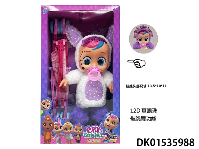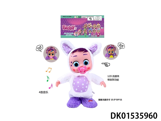 22 Inch injection molded solid body electric walking 12d real eye ball plush white rabbit crying baby with nipple sensing. function description [crying, singing 4 songs, dancing, walking no electricity included