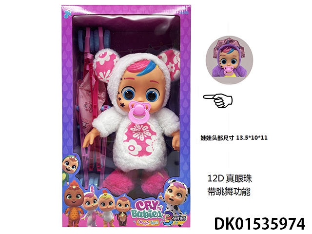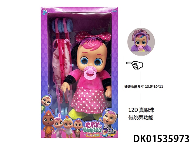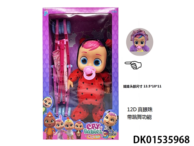 22 Inch injection molded solid body electric walking 12d real eye floating insect crying baby with nipple sensing. bring a large cart. function description [crying, singing 4 songs, dancing, walking no electricity included