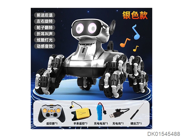 Eight wheeled stunt robot dog (silver dual remote control)