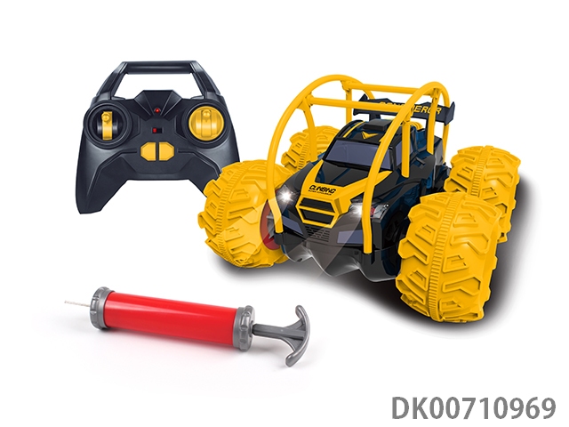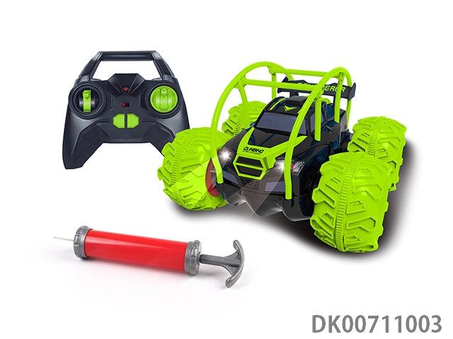 Amphibious stunt double sided vehicle (inflatable wheel)