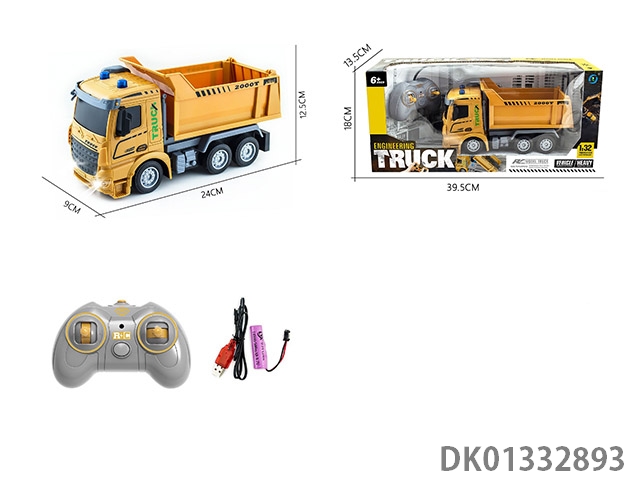 Remote control four-way 1 to 32 short head engineering dump with light remote control car (electric package)