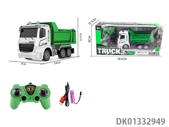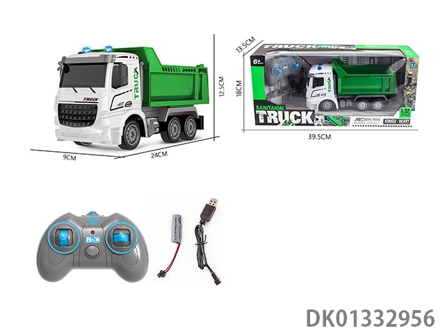 Remote control seven way 1:32 long head environmental sanitation dump truck with music 2.4g remote control car (including electricity)