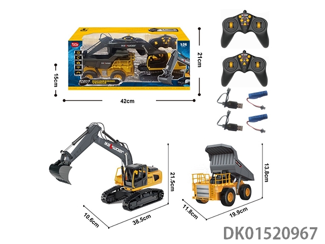 1: 24 9-Channel semi alloy remote control excavator and dump truck