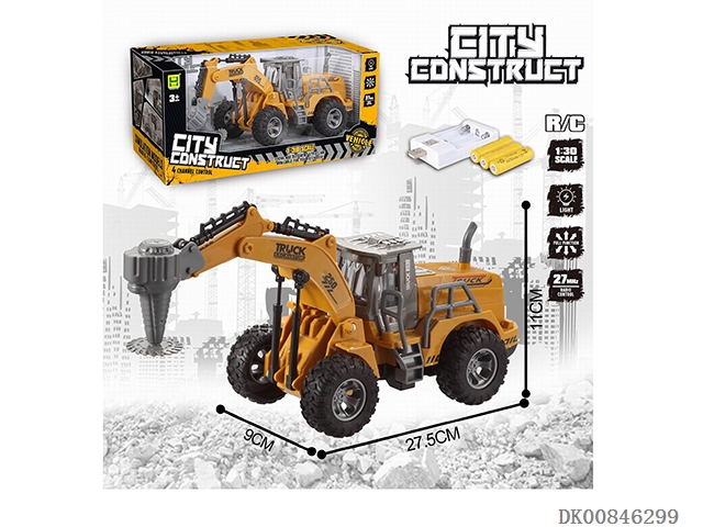 1: 30 Five way remote control light high arm digging engineering vehicle simulation car model boy toy