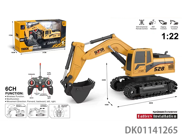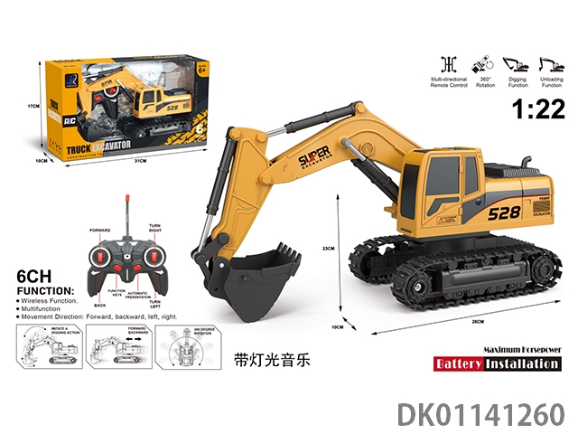 6-Channel remote controlled excavator with lights, music/and 1-button demonstration (3.7 lithium batteries and charging lines are provided for the power supply), remote control 2 aa battery are not included
