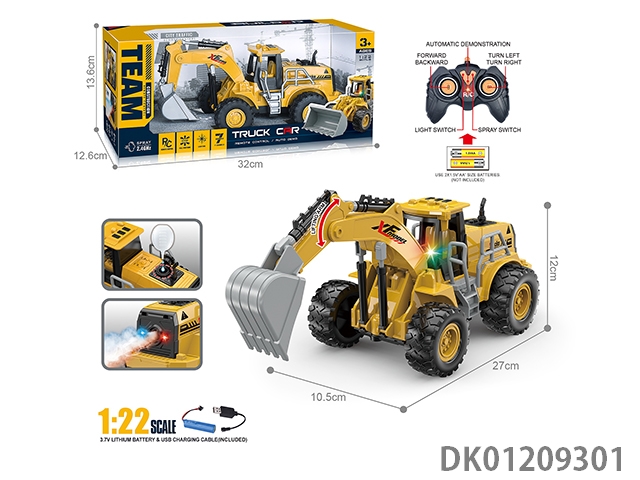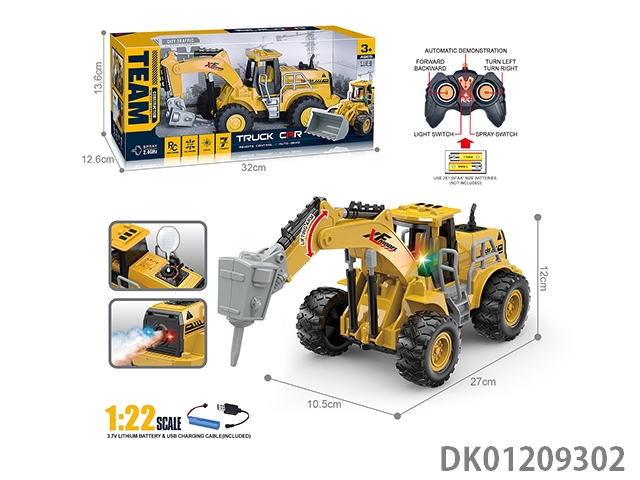 2.4G 1:22 seven way with spray light, one button demonstration, remote control excavation engineering vehicle