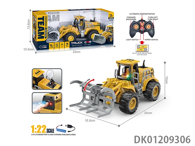 2.4G 1:22 seven way with spray light, one button demonstration remote control grab engineering vehicle