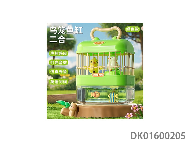Green battery powered voice controlled birdcage and fish tank