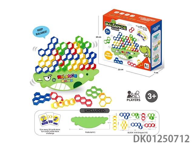 Board game stacked music, balanced building blocks, russian hexagonal block cartoon dinosaur (64 pieces)
