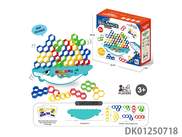 Board game stacked music balanced building blocks russian hexagonal block cartoon shark (64 pieces)