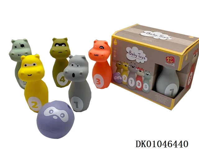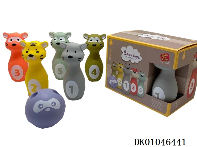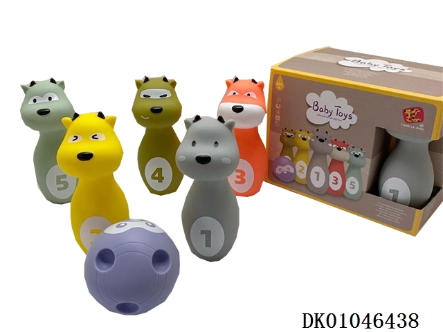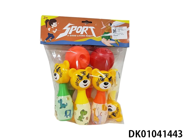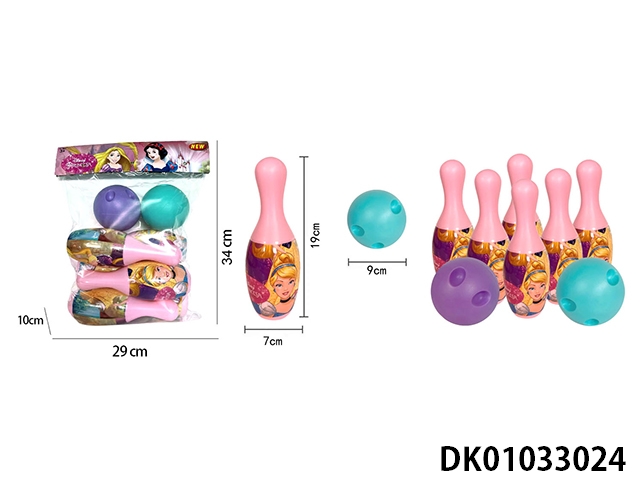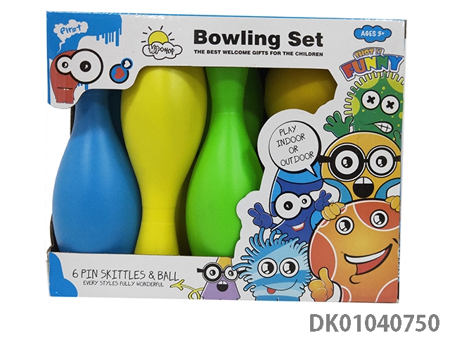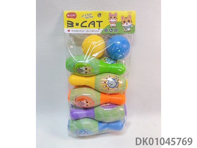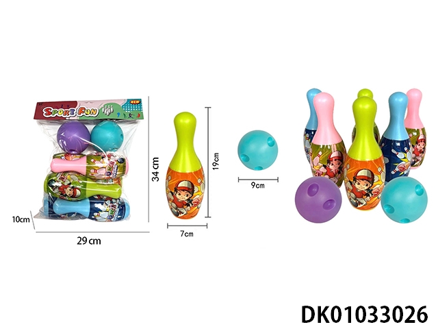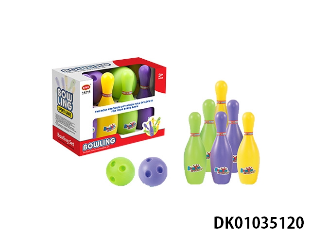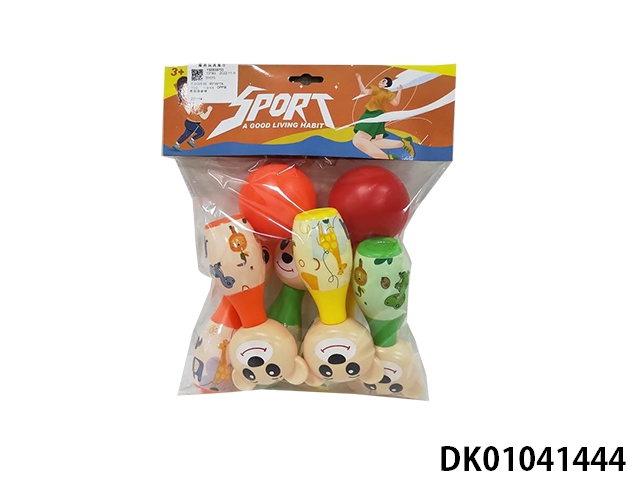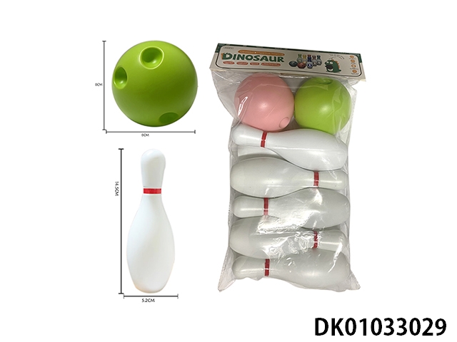 Bowling pins 17.5cm x 6 bottles and balls 7.5cmx 2