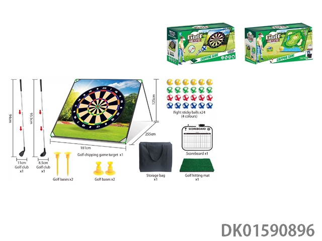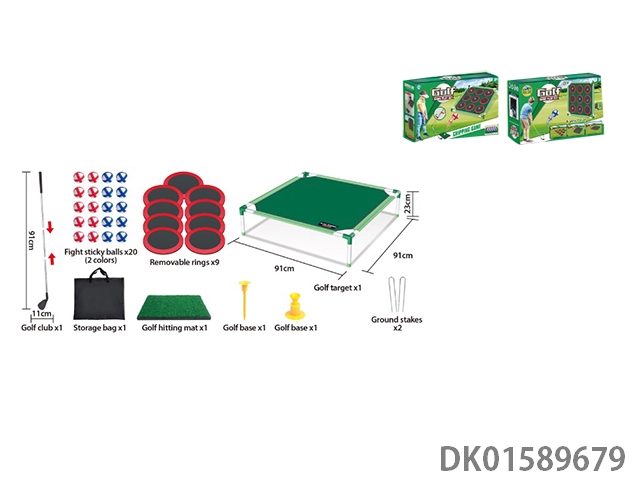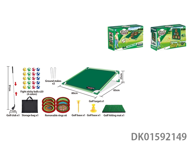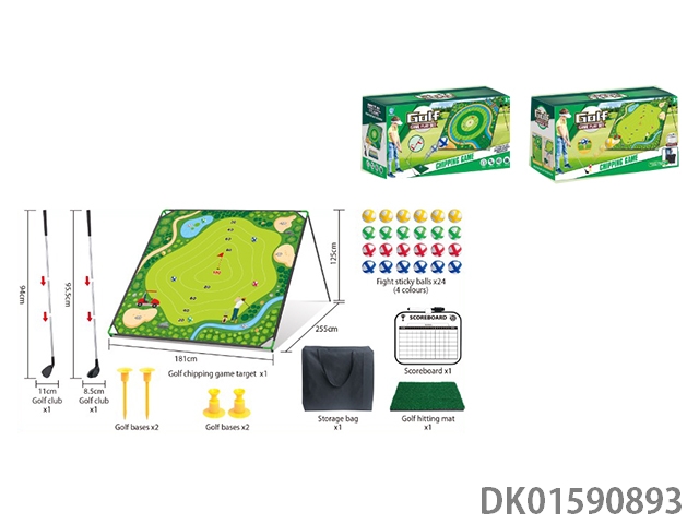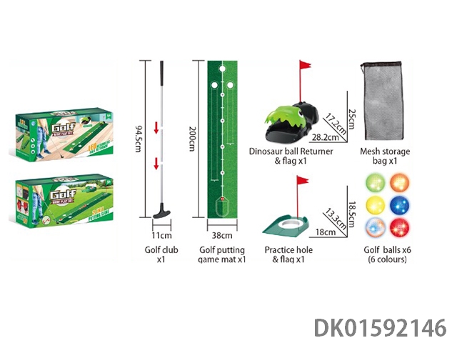 3 Golf clubs, 2 sets of flag ball positions, 6 balls, and a 100x75cm golf mat with 12 golf sticks and 4 hooks