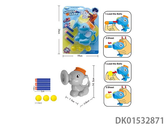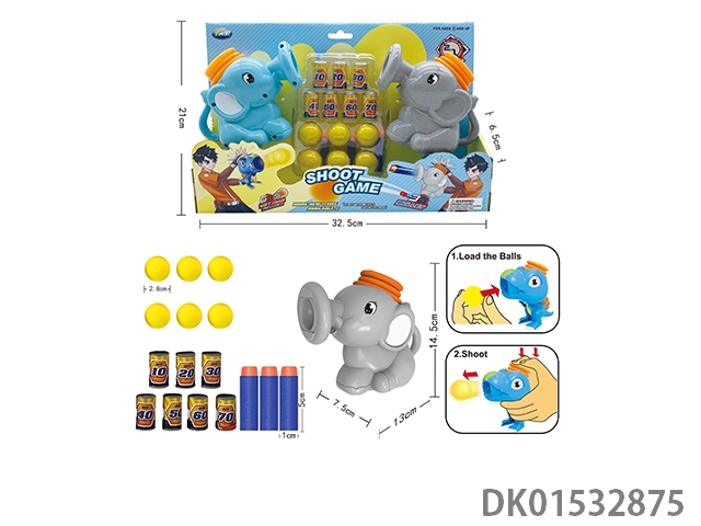 2-In-1 air pressure cartoon elephant with 3 balls and 3 long bullets mixed in two colors