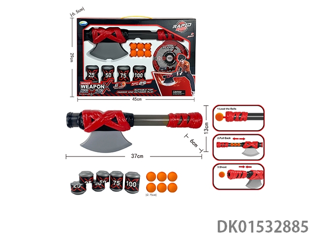 Axe gun, 5 eva bullets, and 6 bowling balls