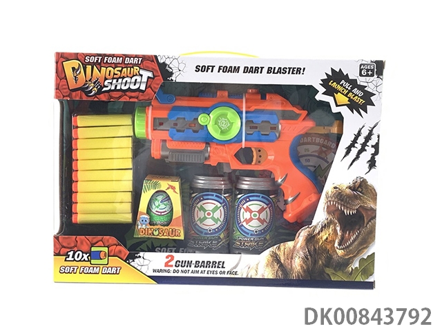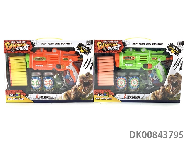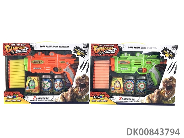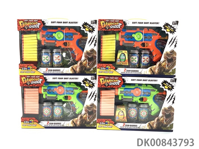 New conventional dinosaur version hand-held dual barrel continuous firing soft bullet gun (no.1 gun and 2 coke bottle targets, 1 dinosaur egg and 10 eva environmental bullets) (2 colors)