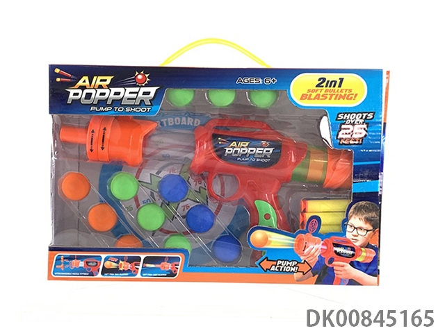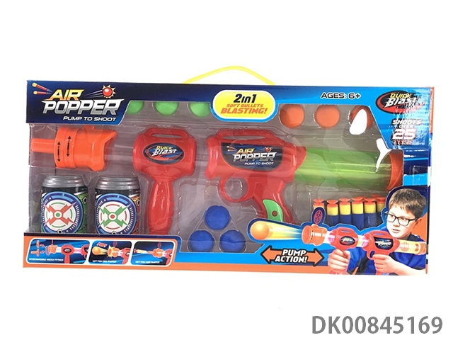 Aerodynamic gun and multi choice configuration eva shell and sucker soft bomb and clip and target