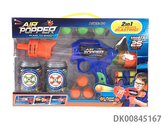 Aerodynamic gun and eva shell and sucker soft bullet and clip and coke bottle bull’s-eye