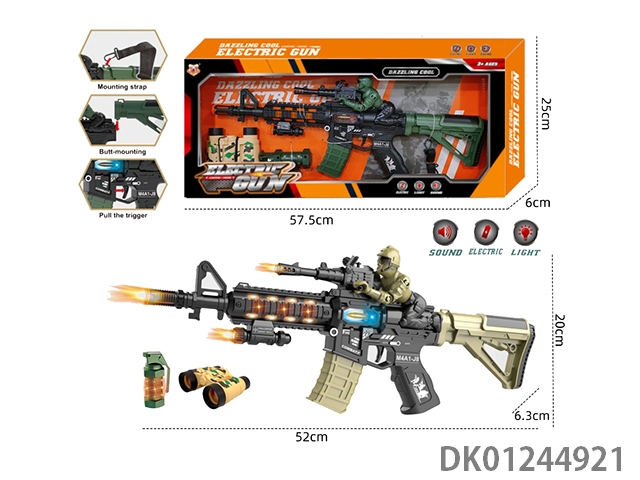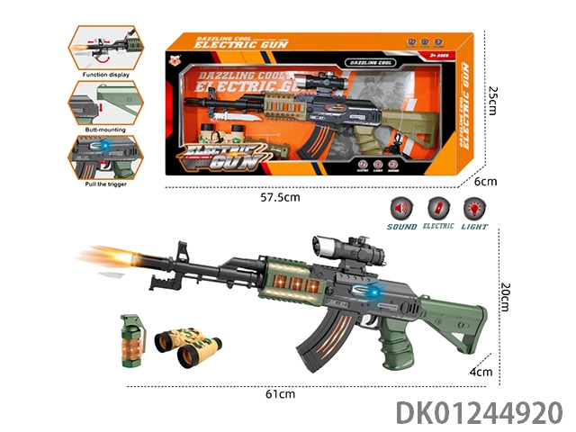 Ak47 sound and light telescopic vibration electric gun (equipped with strap and telescope, grenade cartridge (grenade cartridge bag 3 * ag10 button battery) (not included) 3xaa