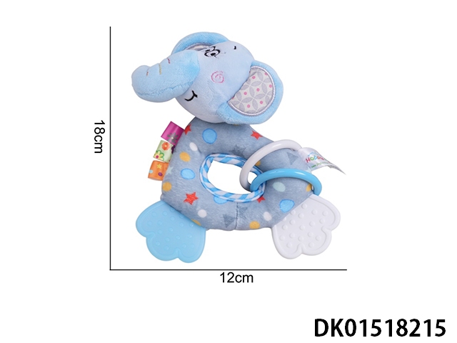 Baby plush toy teething round hand bell blue elephant