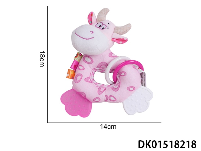 Baby plush toy teething round hand bell pink cow
